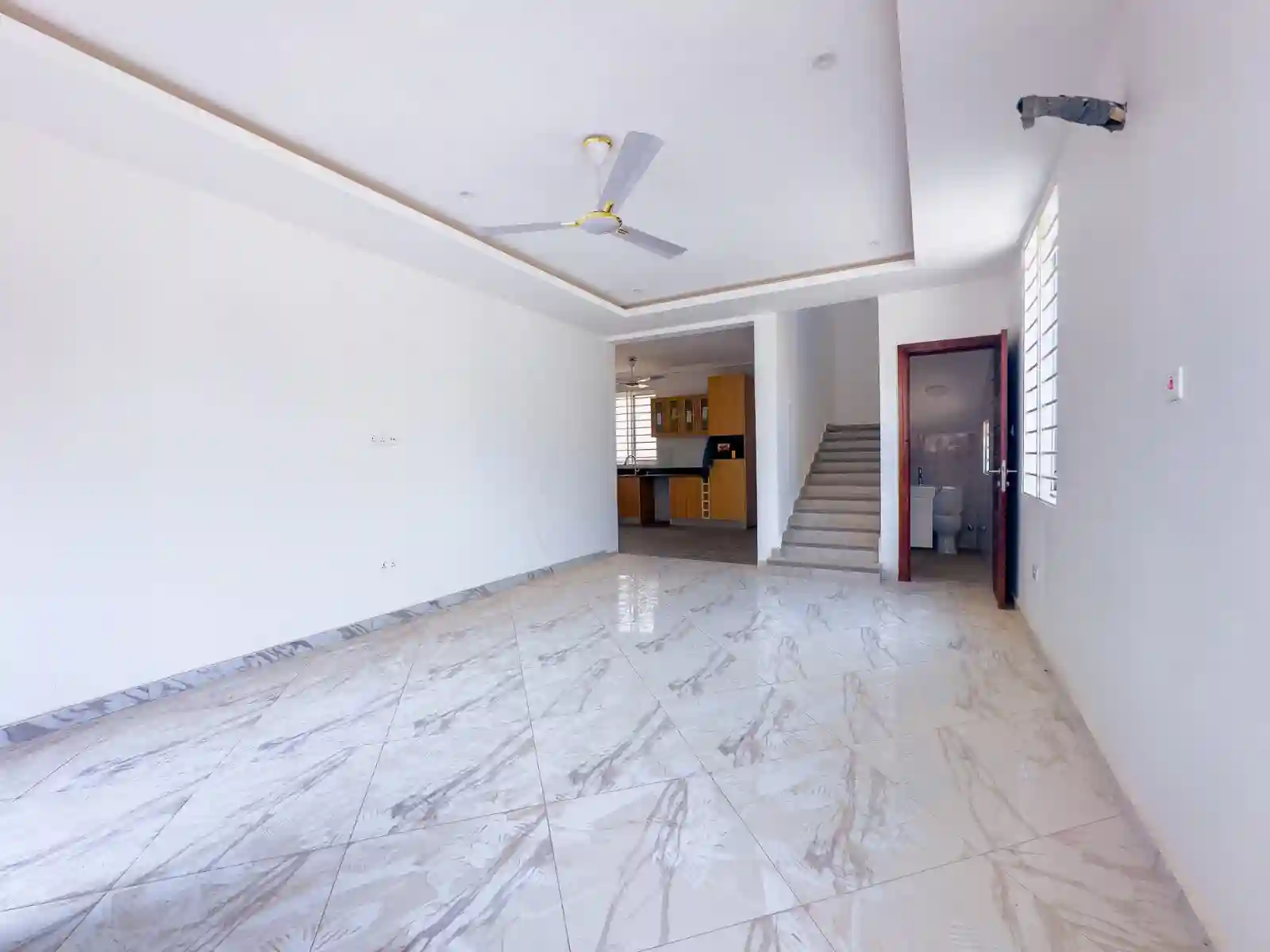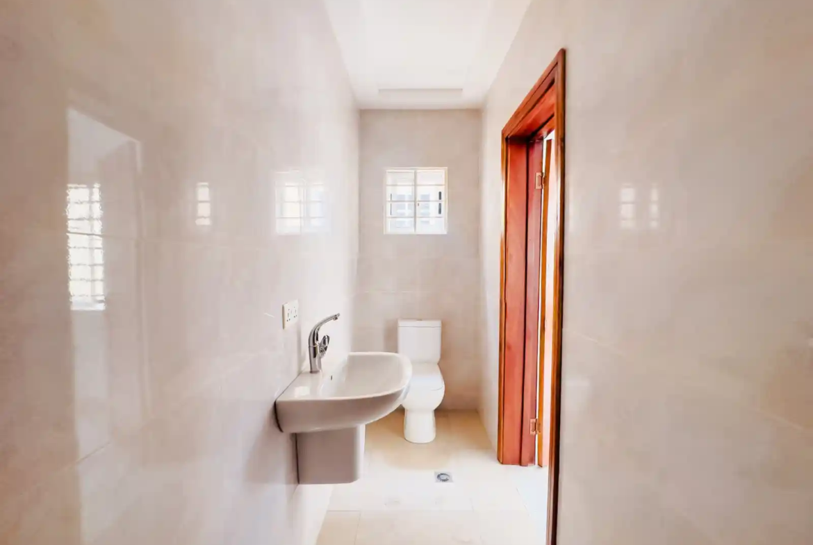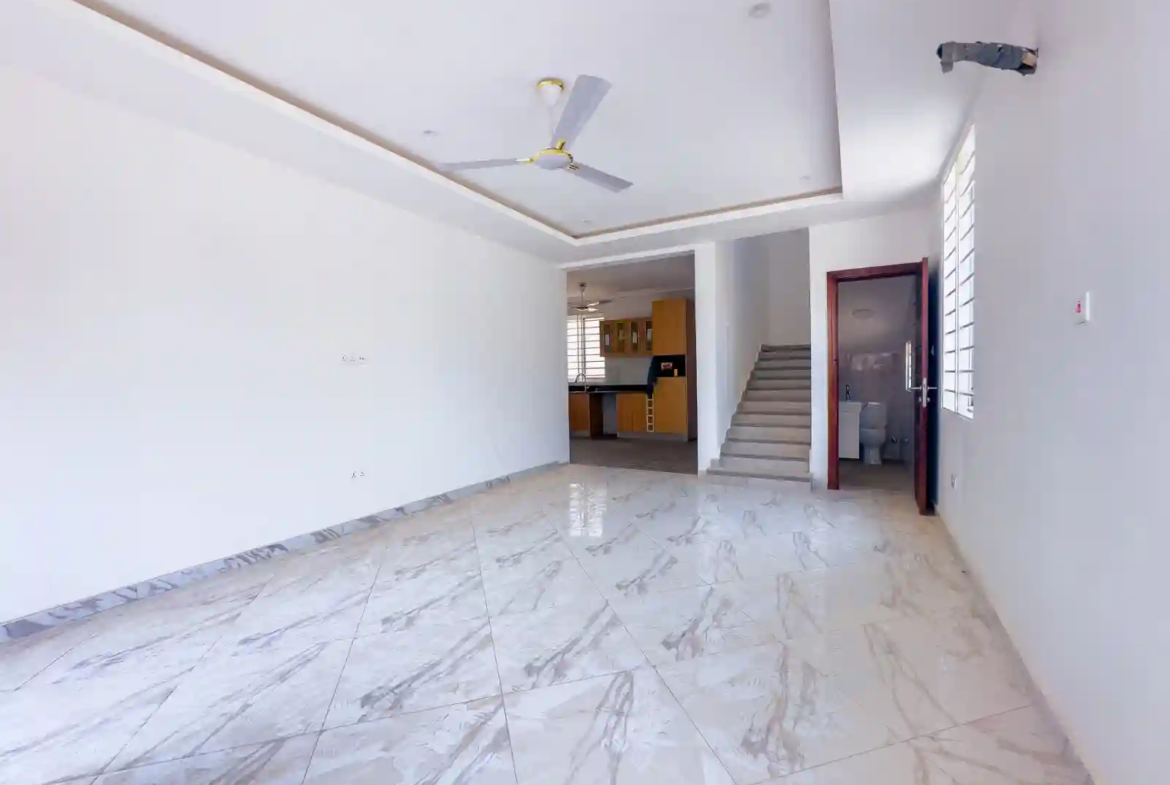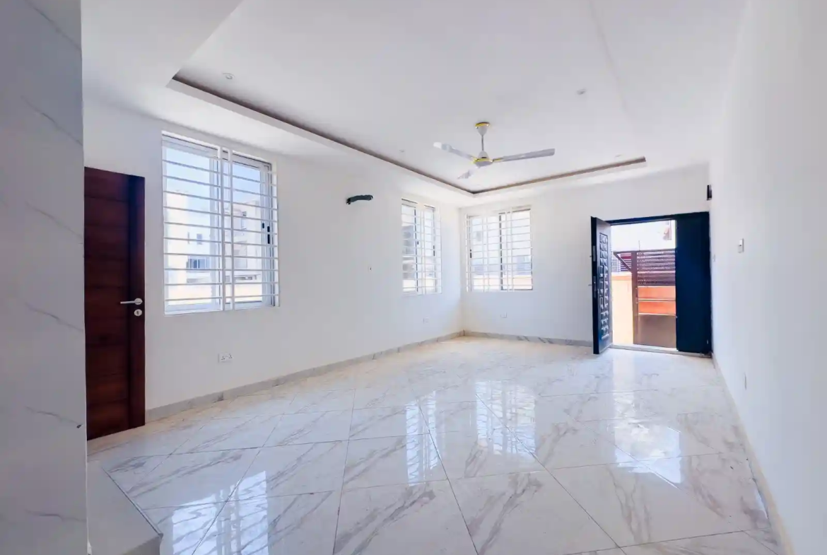 This 2 bedroom house sale gated community Achimota features a bright open-plan living and dining area that flows smoothly into a fully equipped modern kitchen. The layout is designed to maximize space and comfort, creating a welcoming atmosphere for everyday living. Both bedrooms are spacious and en-suite, ensuring privacy and relaxation, while a guest washroom adds convenience for visitors.